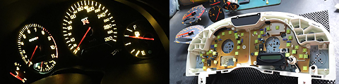 電球を交換するのではなく、LED専用基板を使い、無段階調光機能をプラス。ニスモ、スタンダード共に対応。くっきりとした明るいメーターをぜひ!