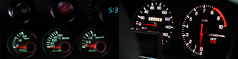 33にもLED基盤仕様のメーターが登場。メインおよび三連があります。電球交換よりクッキリ見えます。照度調整機能あり。詳細はお問い合わせください。