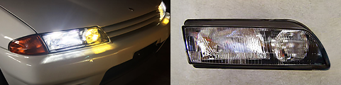 プロジェクターから角目に変更しHID化すれば明るさは段違い。照射範囲も広がります。レンズのアイライン補修もお任せください。